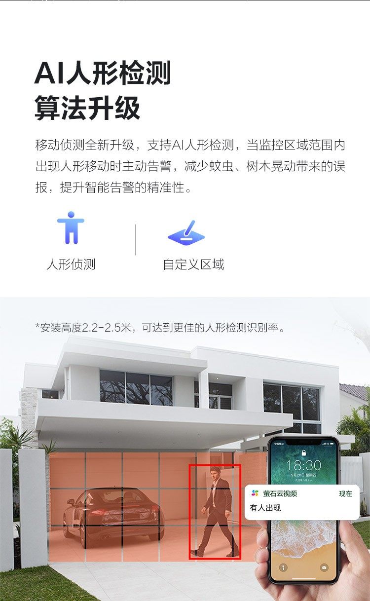 萤石云360°智能摄像头wifi室外全彩夜视800万极清监控手机看H8C