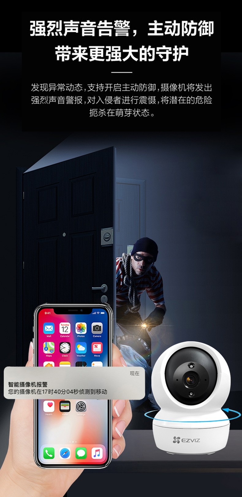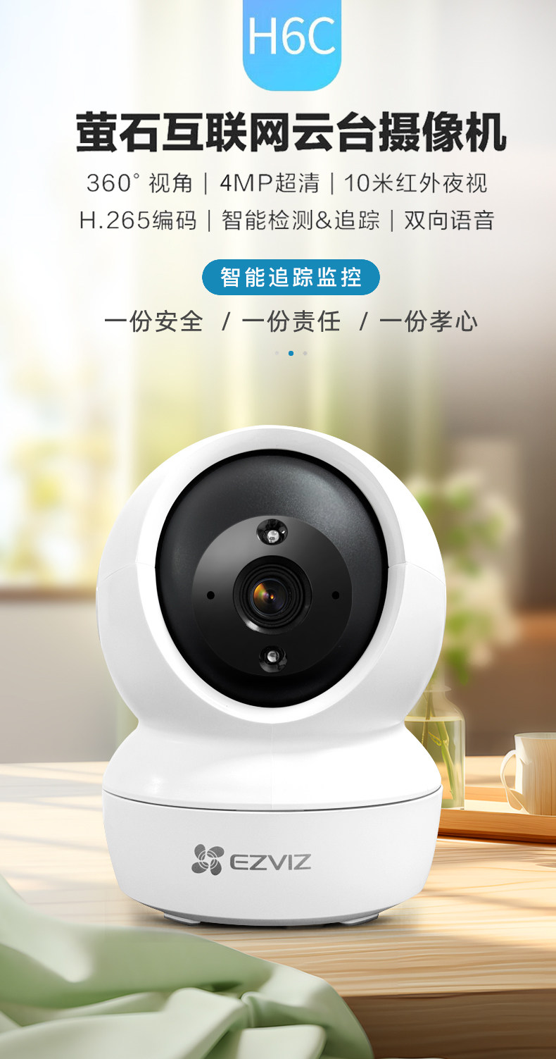 海康威视H6C摄像影头家用手机无线wifi远程室内360度无死角监控器32G