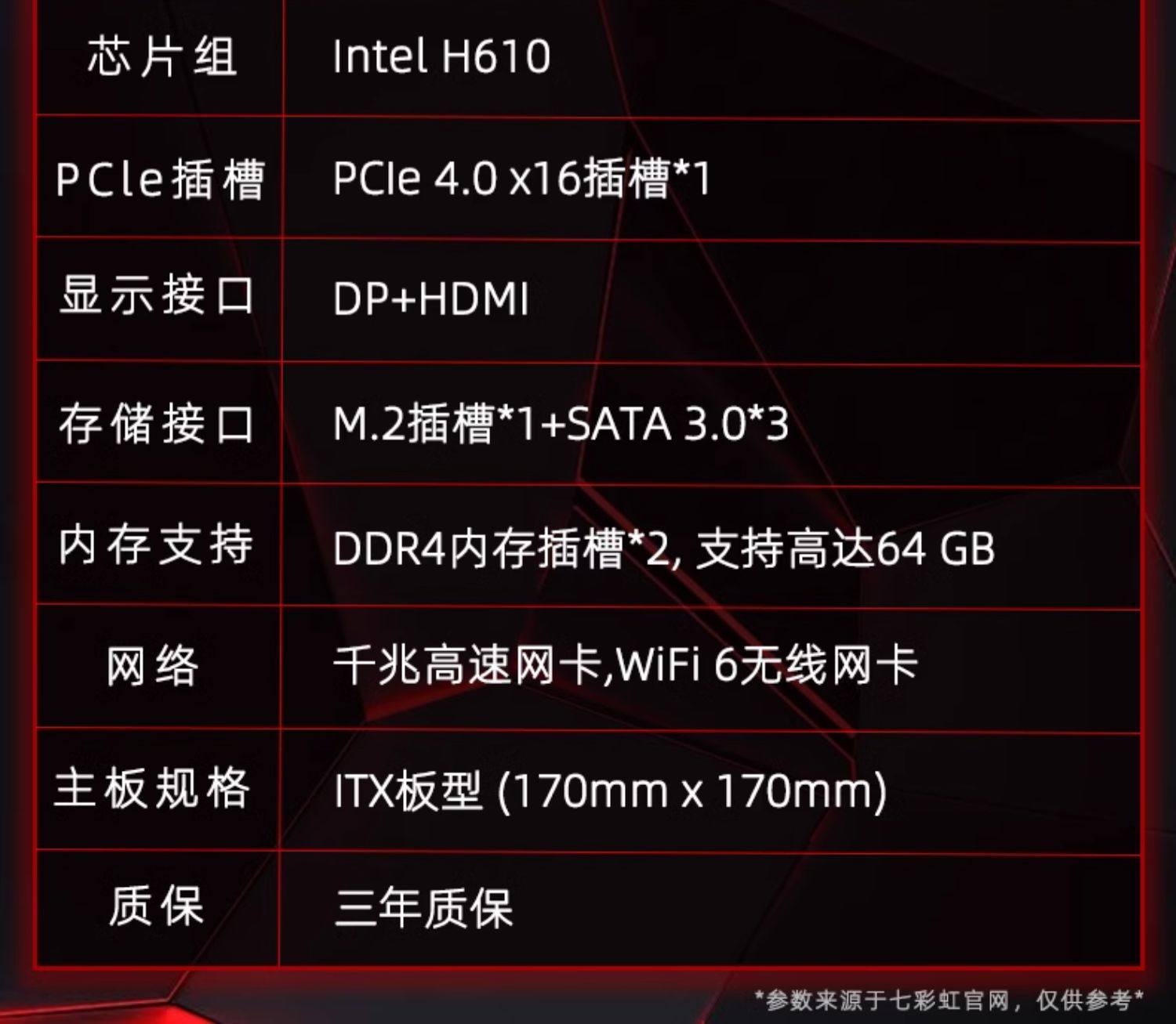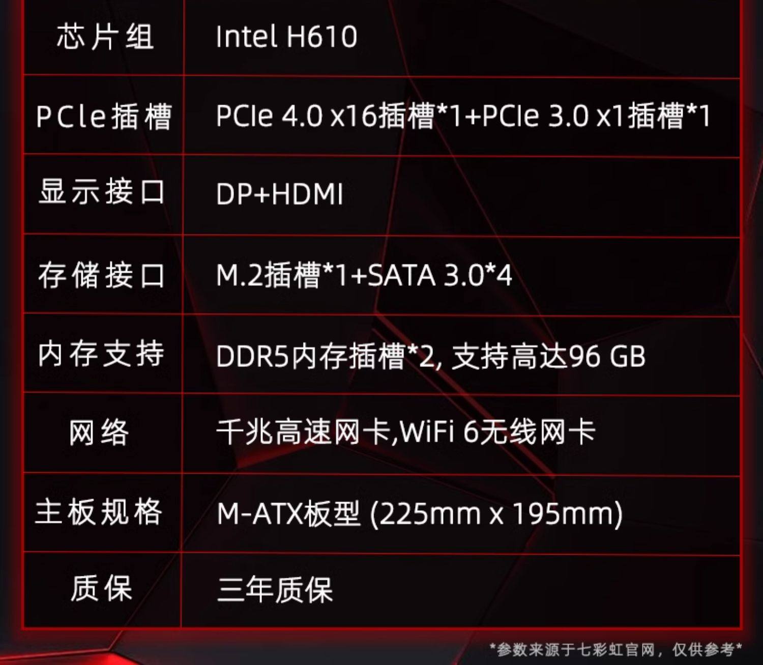 七彩虹H610台式机电脑游戏主板支持12代CPU新品DDR4内存电竞主板